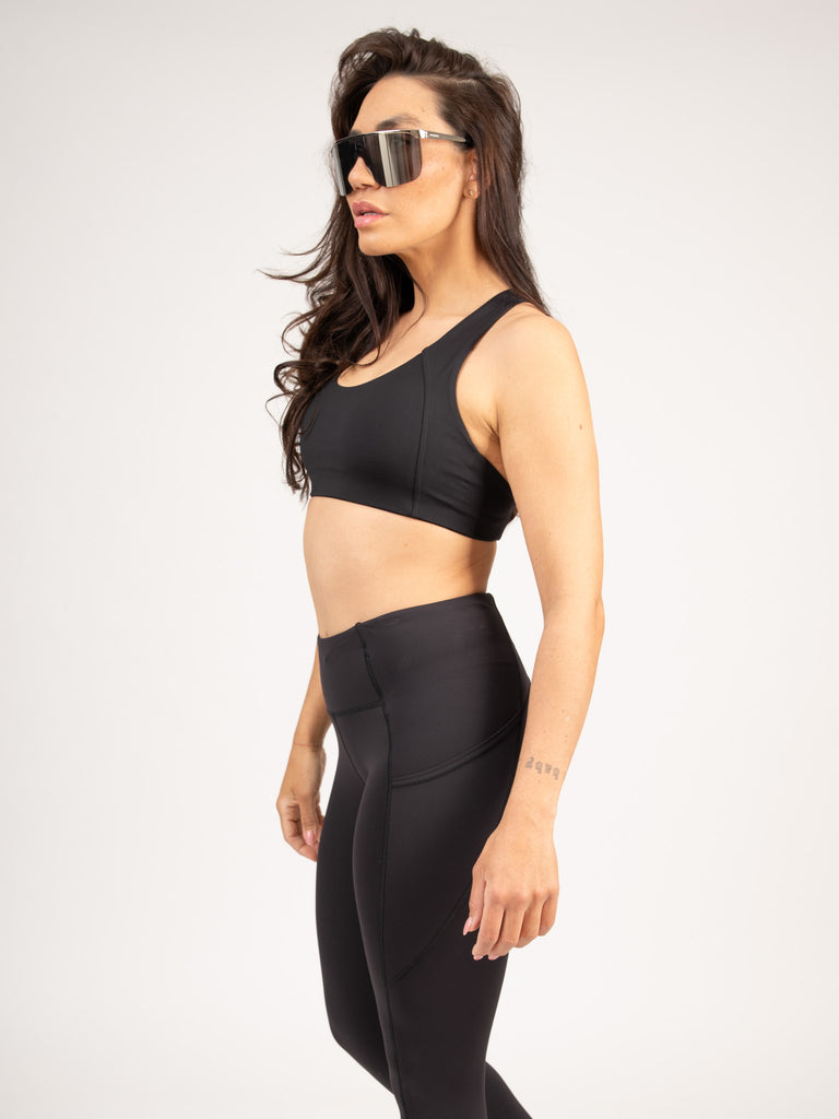 Light weight compression and seam-free cross back straps with adjustable back fastening deliver the perfect base layer for movement.