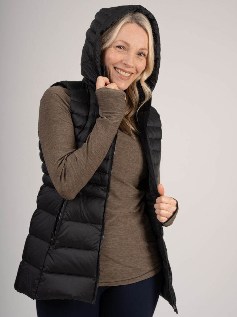 Designed with refined details including extended sleeves with thumb holes for warmth, sun protection, and hand coverage.