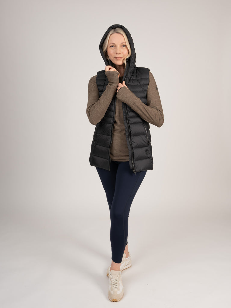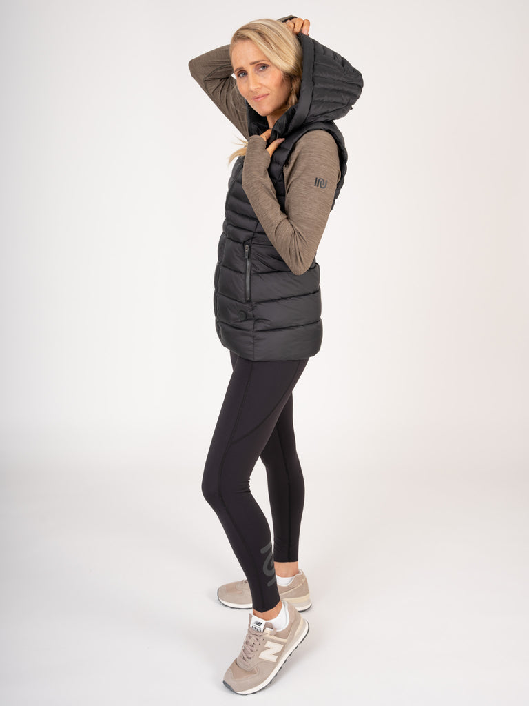 Crafted with responsibly sourced down and feather (RDS v3 certified, 700 fill), the Inu8 Vest offers natural insulation and luxurious warmth without sacrificing freedom of movement. Shaped quilted panels and longer hemlines flatter the form, while brushed recycled fleece at the back panel and in the pockets delivers ultimate comfort.