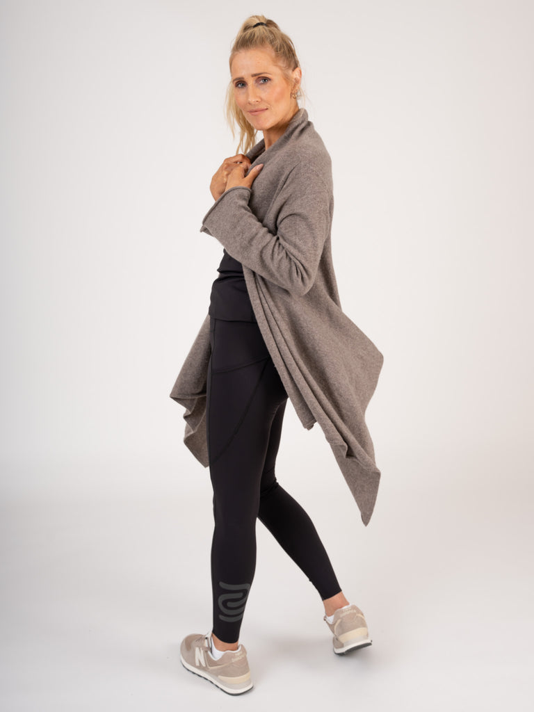 The free-flowing waterfall design falls gracefully below the waist, while the front panels can be styled in multiple ways, allowing you to create a look that is uniquely yours. Thoughtful details, such as the set-in sleeve, ensure the wrap stays comfortably in place as you move with ease through your day.